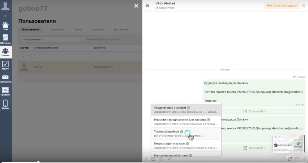 Интеграция WhatsApp с Геткурсом: чем выгодно данное решение