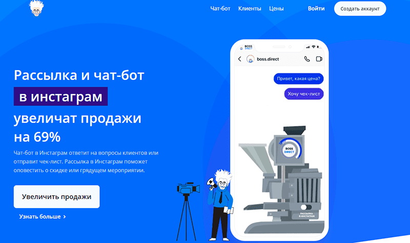 Это инструмент, который благодаря простому интерфейсу поможет запускать рассылки в Директ и создать чат-бот в Инстаграм*.