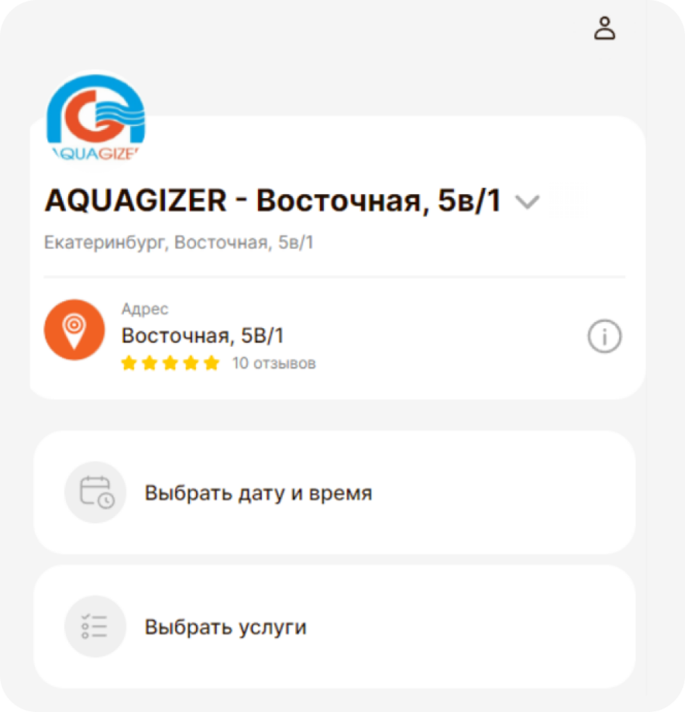 В приложении пользователь выбирает подходящую автомойку и самостоятельно записывается на удобное время