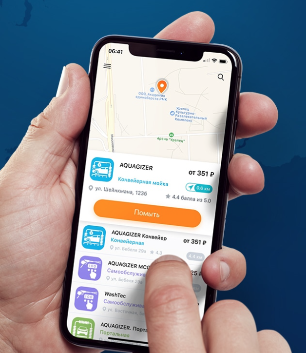 AquaGizer — крупная сеть автомоек на Урале. Компания работает на рынке уже 20 лет — за год через пункты обслуживания проходит более 800 тысяч машин. На сегодня в Екатеринбурге открыто 16 автомоек с разными видами услуг: ручная, конвейерная или мойка самообслуживания.