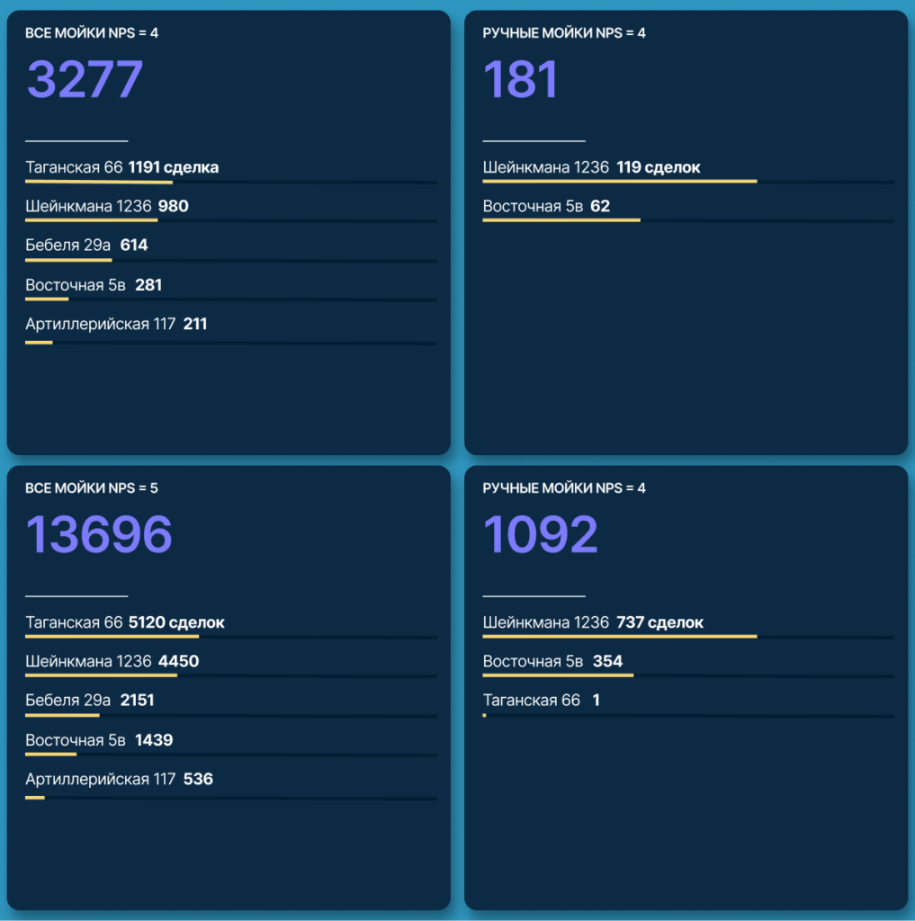 Бизнес хотел не только своевременно реагировать на проблемы клиентов и отрабатывать негатив, но и устранять причины плохих оценок. Важно было узнать, на каких мойках клиенты чаще всего остаются недовольны обслуживанием.