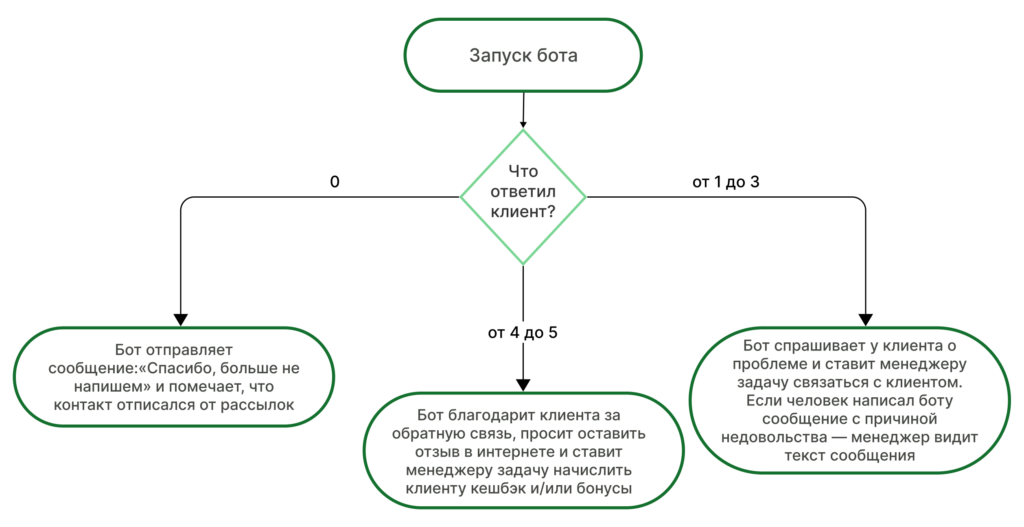 Бот отправляет клиенту сообщение с просьбой поделиться негативным опытом
