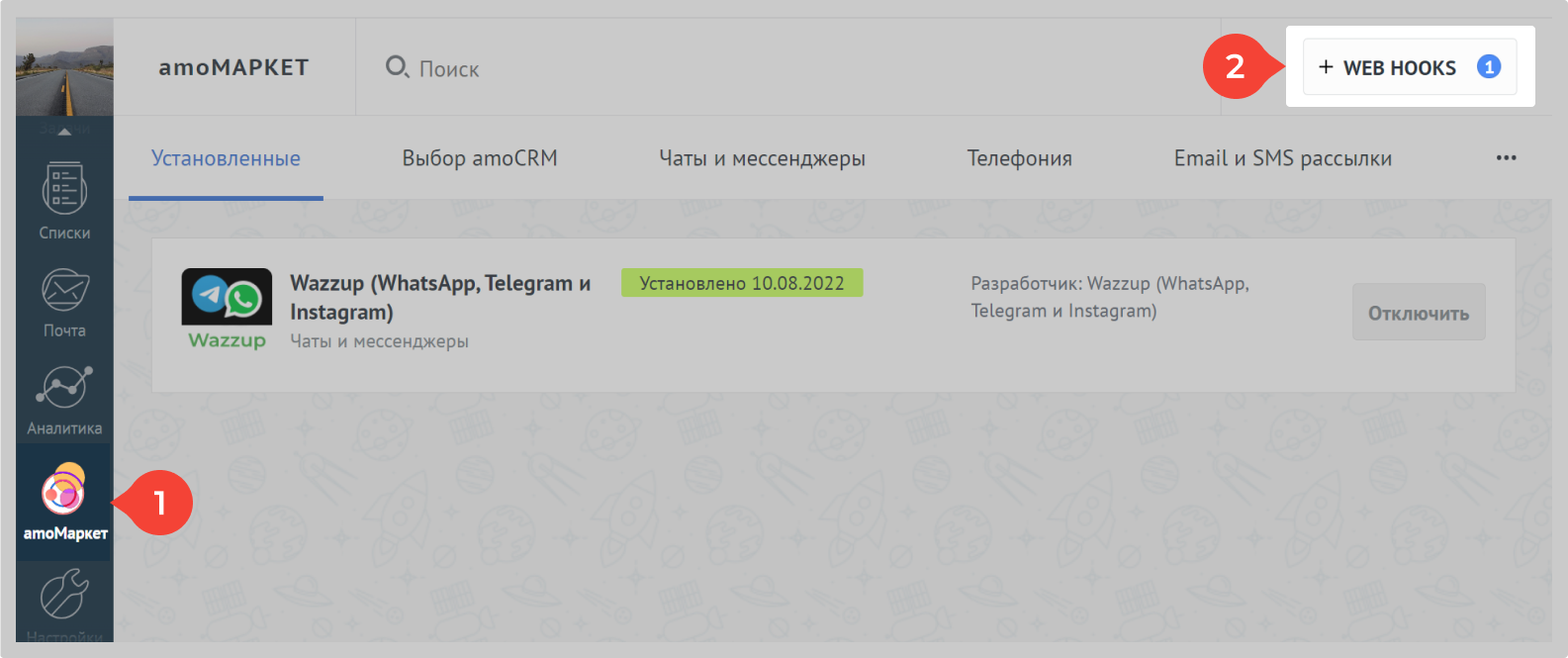 Вебхук — это механизм нотификации о том, что наступило какое-то событие. Например, вам пришло сообщение от клиента. Вебхуки включаются автоматически при создании интеграции, но если произошел какой-то сбой — могут отвалиться. Тогда: