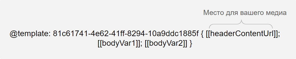 Добавить можно только тот тип медиа, который вы выбрали при создании шаблона. Например, если вы согласовали шаблон с изображением, прикрепляйте только картинки — отправить видео или документ не получится.