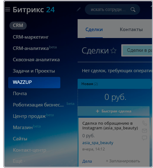 Чтобы увидеть все доступные вам чаты, нажмите кнопку Wazzup на левой панели меню.