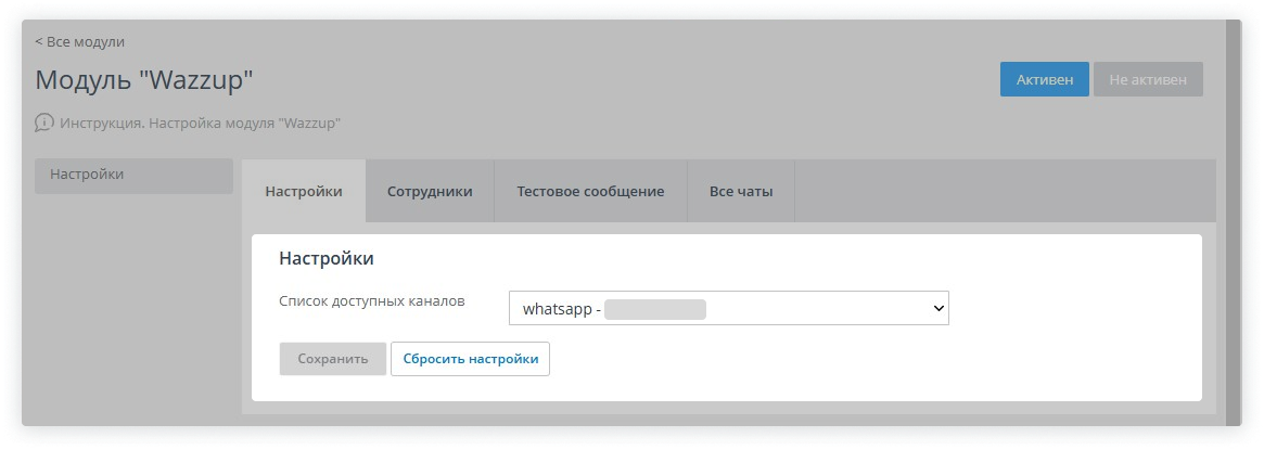 10. Вернитесь во вкладку Wazzup и обновите страницу.