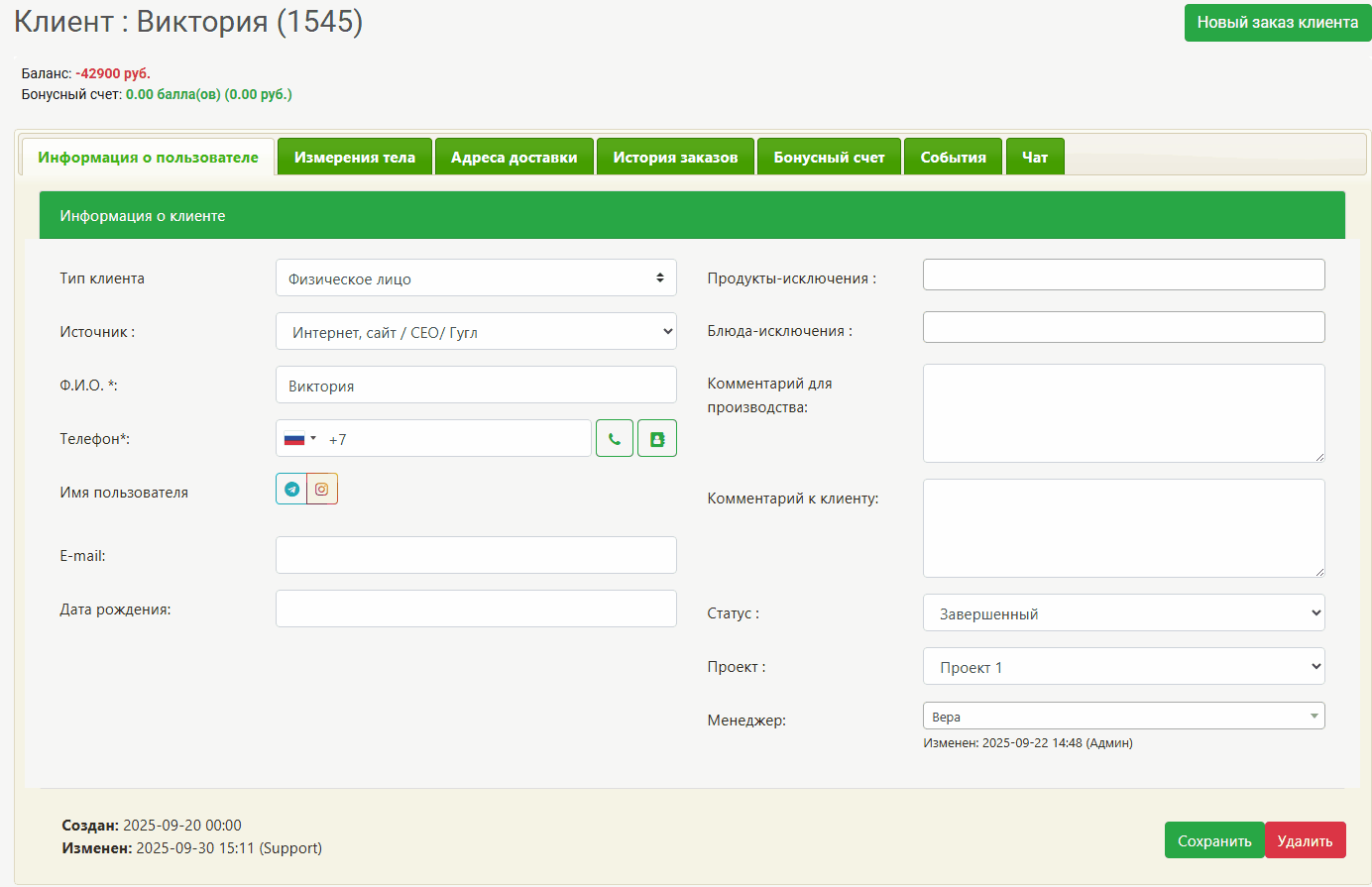 Чтобы чат прикрепился к клиенту, укажите в карточке клиента: