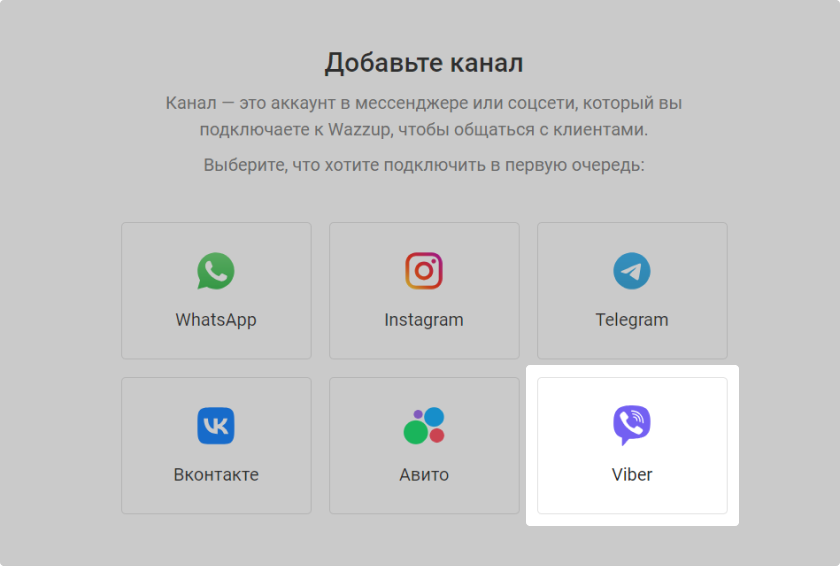 Если к Wazzup уже подключены мессенджеры, нажмите «Добавить канал» → выберите Viber.