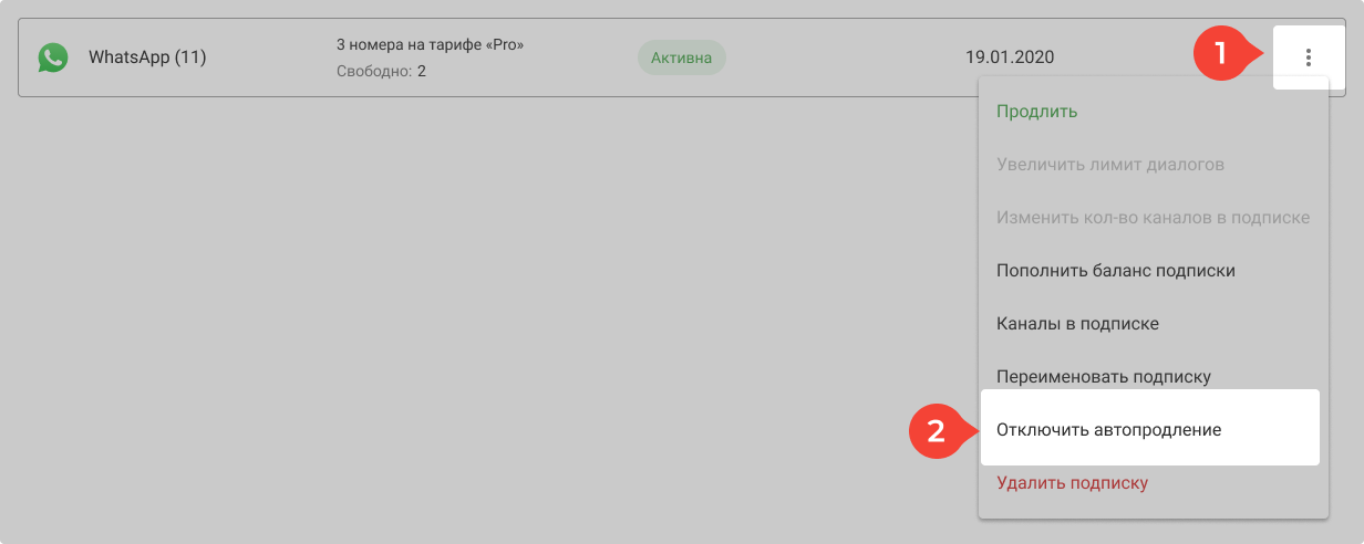 1. Перейдите в раздел «Подписки» в личном кабинете Wazzup.