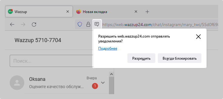 Разрешите показ уведомлений при входе в Wazzup Web.